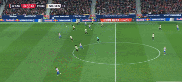 第45+2分钟,卢克曼左路倒三角回敲,阿尔瓦雷斯在禁区前沿轰出一脚重炮,皮球直挂网窝,马竞带着4球优势进入中场休息。