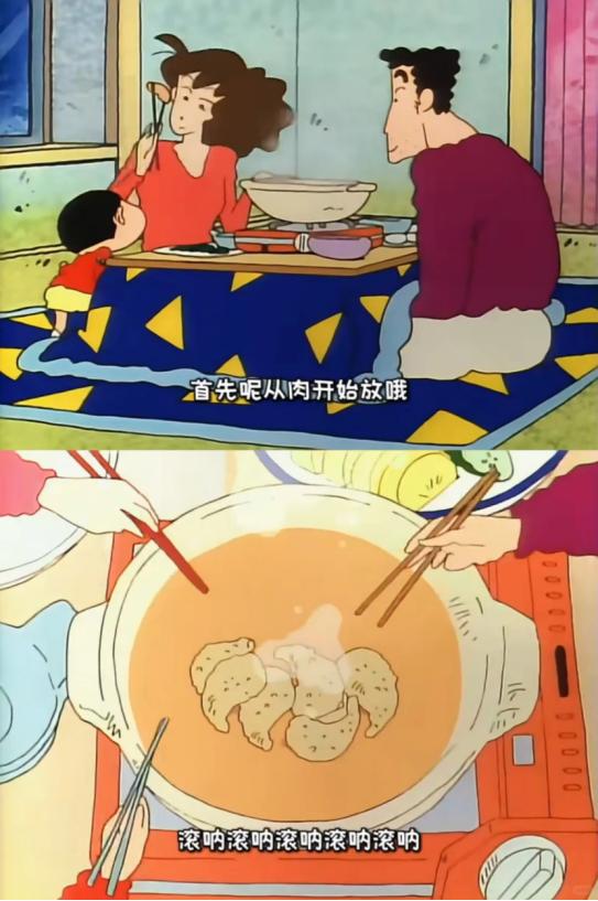 火锅虽香,但人们更习惯与他人共享的氛围。(图/《蜡笔小新》)