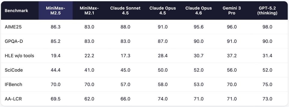 MiniMax在官方发布中表示,设计M2系列基础模型的目标是打造能够驱动复杂智能体而无需担忧成本的模型。M2.5被定位为首款让用户无需担忧成本的前沿模型。