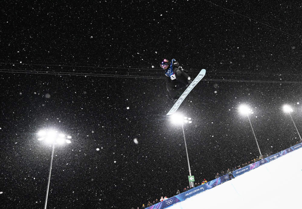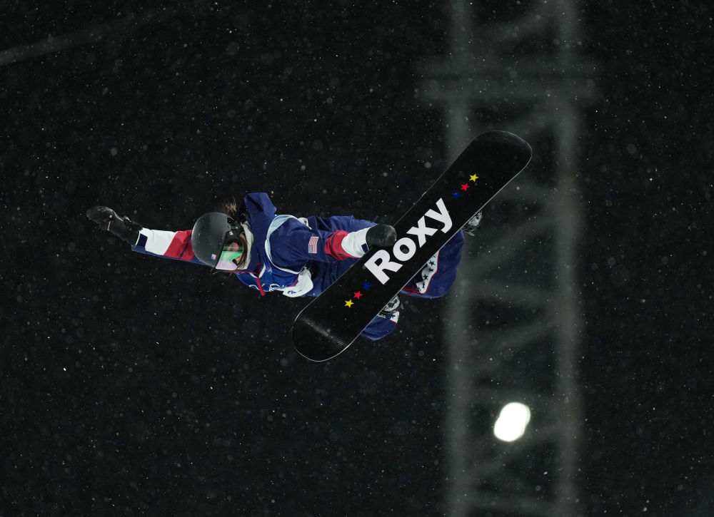 2月12日,美国选手克洛伊·金在米兰冬奥会单板滑雪女子U型场地技巧决赛中。新华社记者 夏一方 摄