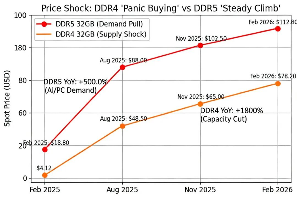 图3:DDR5 vs DDR4价格走势对比(2025-2026)(来源:DRAMeXchange/自制)