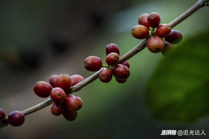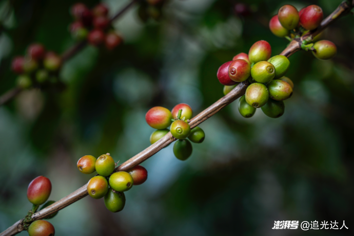 到了傍晚,夕阳斜照,每一颗咖啡果都像被点亮的灯笼,挂满了枝头。
