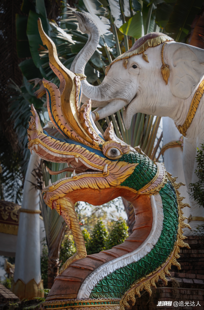 正门的四尊大象雕塑威严又慈悲,每尊姿态各异,却都朝着同一个方向——佛塔。它们是力量的象征,在这座寺院里却显得格外温和。沿阶而上时,我数了数台阶,恰好一百零八级——在佛教中,这是烦恼的数量。每走一步,都在提醒着放下些许纷扰。