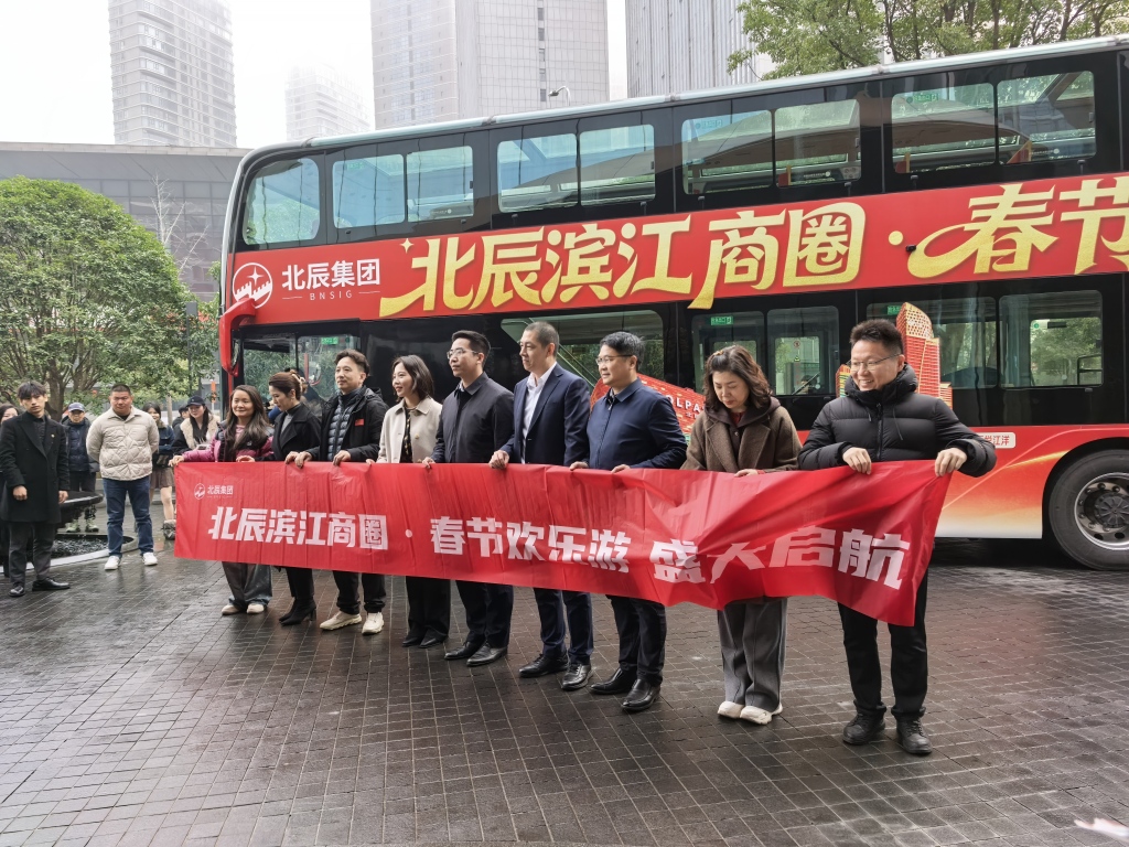 2月14日,主题为“未来向新 滨江同行”的2026年长沙北辰滨江商圈春节欢乐游发车仪式,于长沙北辰三角洲正式举行。此次活动覆盖新春重要时段,分为2月14日的发车仪式与2月19日至23日(正月初三至初七)的湘江巴士巡游两大阶段,围绕“新春寻福·滨江同行”的核心方向,把商圈宣传和惠民消费紧密结合起来。