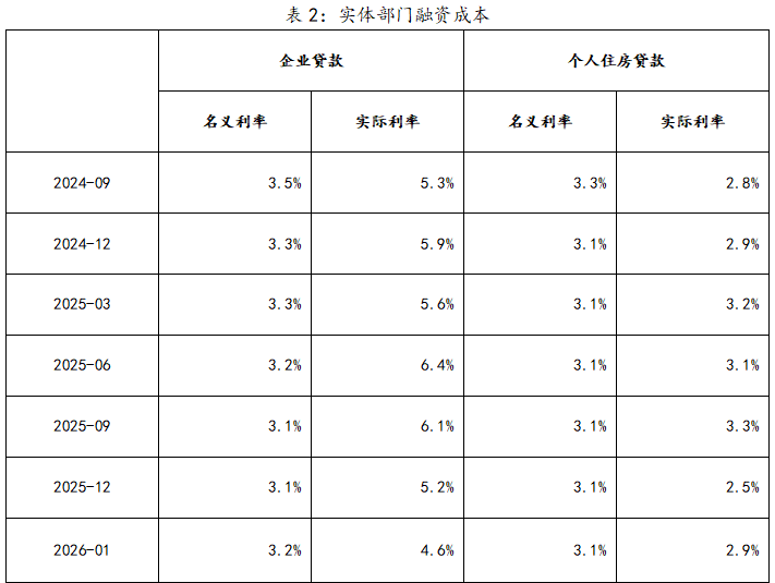实体部门融资成本。数据来源:Wind,企业贷款的实际利率为名义利率减去同期PPI涨幅;个人住房贷款实际利率为名义利率减去同期CPI涨幅