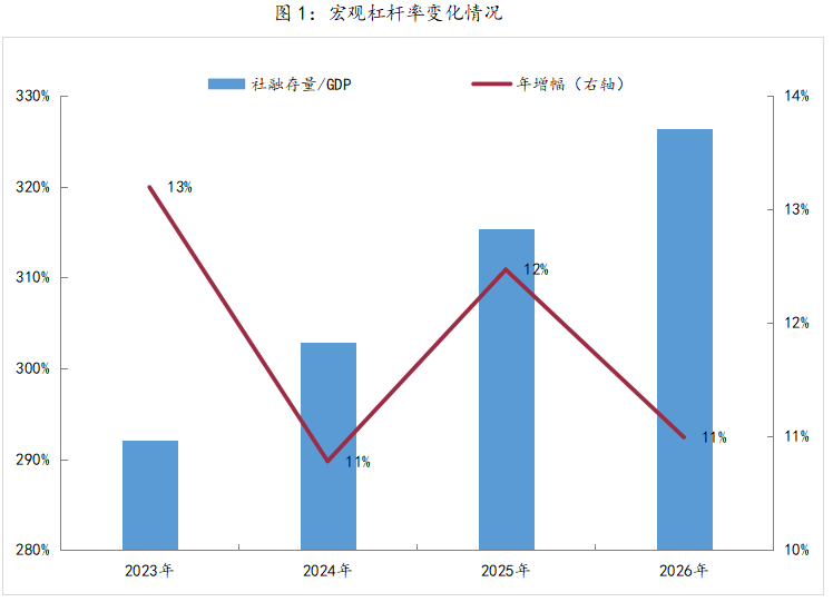 宏观杠杆率变化情况。数据来源:Wind,2026年为预估数