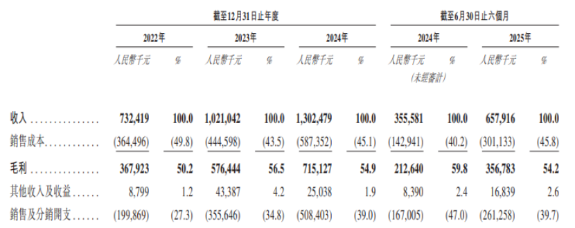 数据显示,2022 - 2024年,伯希和的销售及分销开支占总收入的比例分别为31.8%、30.5%、33.2%,2025年上半年为41.5%,呈波动上升趋势。其中,广告及推广费用占销售及分销开支总额的比例分别为67.2%、61.4%、61.2%和52.2%,常年有超过一半的费用用于广告宣传。