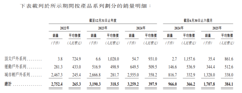根据招股书,该系列产品于2025年1月推出,采用了Pertex面料、PrimaLoft、eVent面料线、1000蓬松度拒水鹅绒、Vibram鞋底及Dyneema纤维等技术,适合专业登山者、极限探险家以及需要在极端天气条件下进行户外活动的人群。