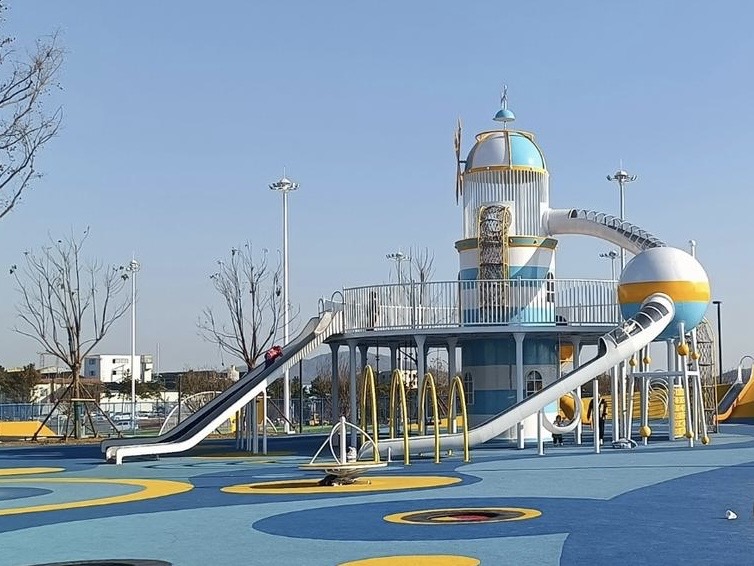 乳山在全域推进儿童友好城市建设,目前已在学校、公园、社区等不同场域打造了35处儿童友好空间。很多公园入口处都能看到“儿童友好城市”的标识,它不是一句空洞的口号,而是具象化为不同年龄分区的活动场地、无动力游乐设施——这是一座城市对待孩子的方式,也是对待未来的方式。