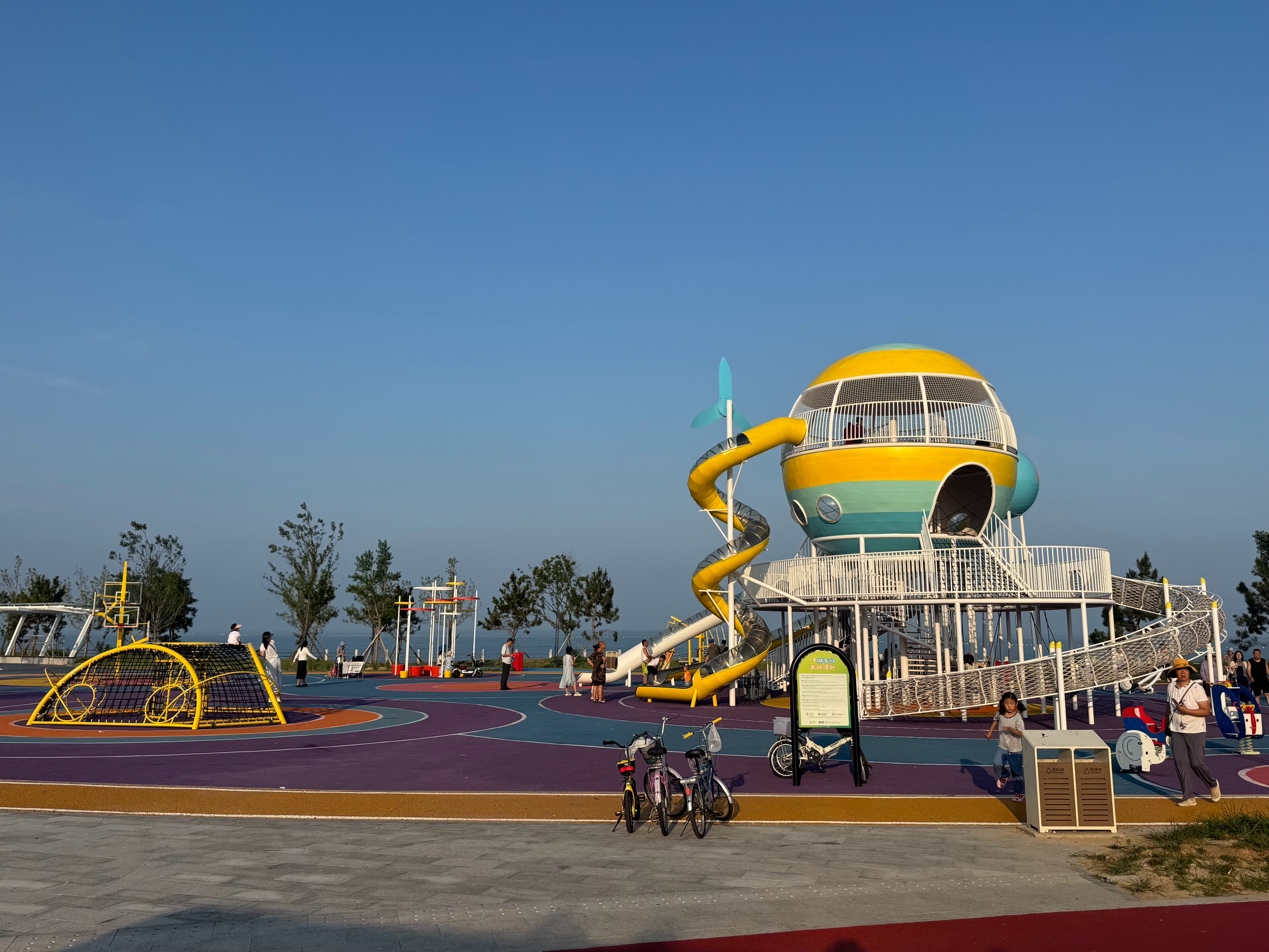 有娃后的这三年,我发现自己居住的城市儿童友好口袋公园越来越多,小区附近的无动力乐园也多了起来。但家乡乳山的儿童友好空间更具吸引力——这里的设施更丰富,活动空间更大,空气质量更好。比如去年夏天,我带娃去海边新建的月亮湾童趣乐园游玩,园内滑梯、爬网、秋千、摇椅等户外儿童娱乐设施一应俱全,每天都吸引很多家庭前来嬉戏玩耍。