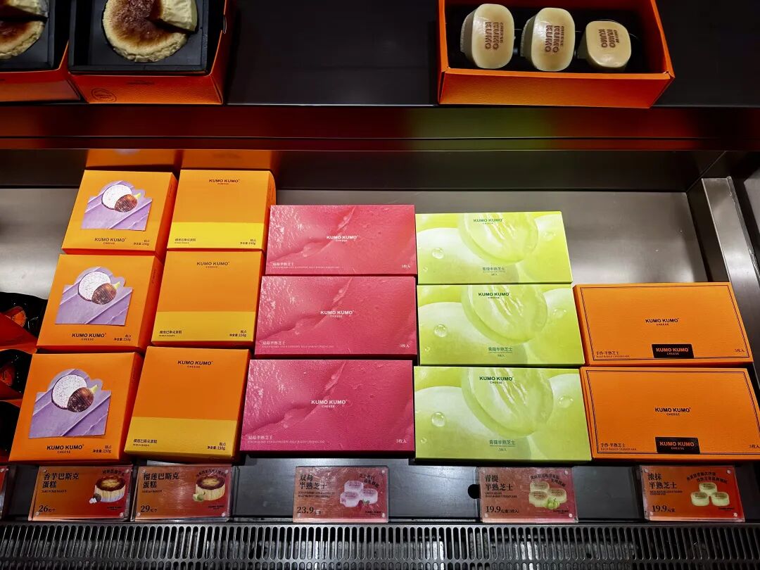 即使是位于广州著名景点的在营门店,KUMO KUMO的销售也略显冷清。2月12日下午6点,时代财经前往广州中心商圈的一家KUMO KUMO门店,其橙色装修显眼,透明玻璃橱窗内店员摇铃提示新蛋糕出炉。