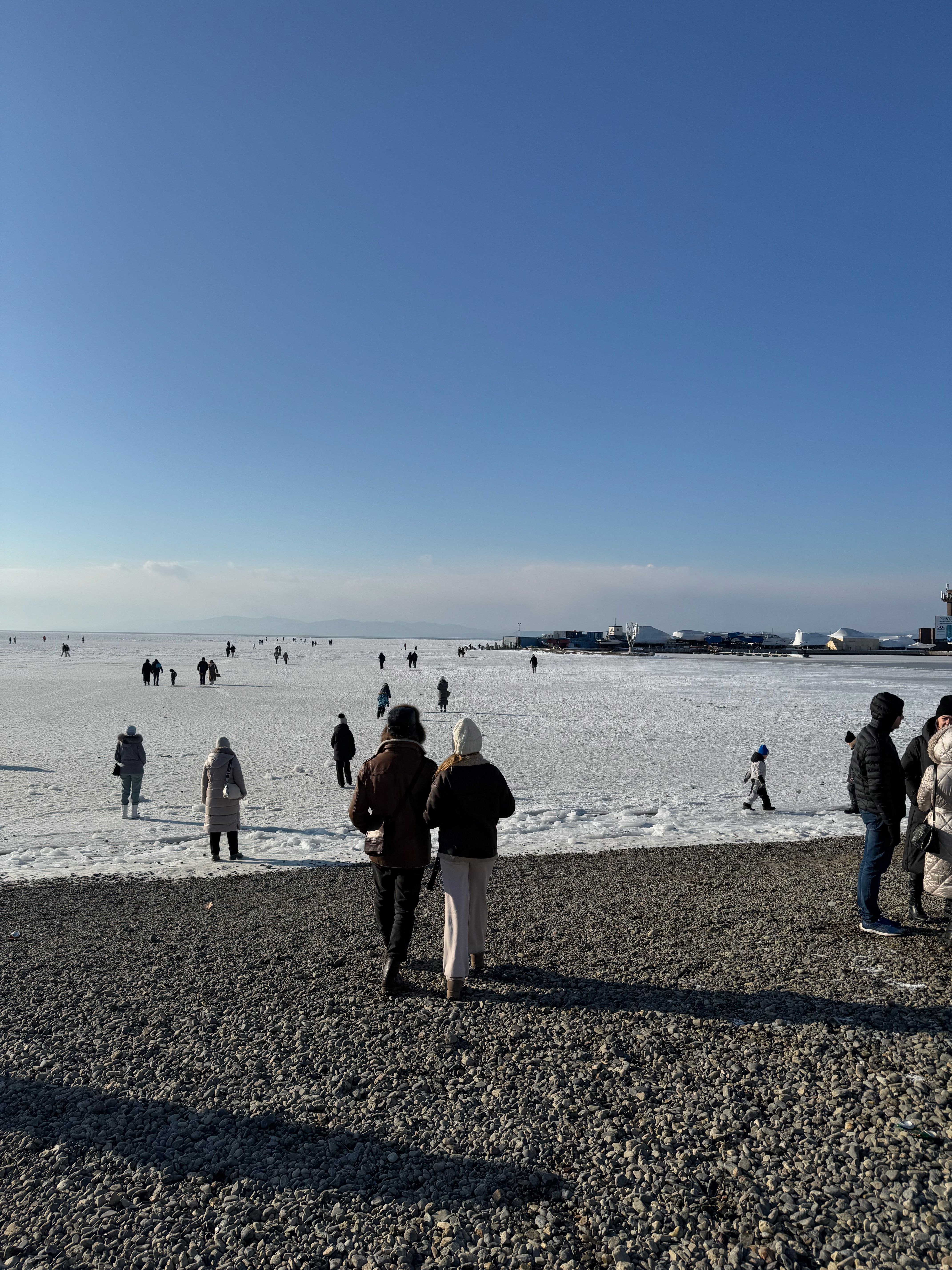 ▲冬天晒太阳是件幸福事,在海参崴还能直接走到冰上散步。