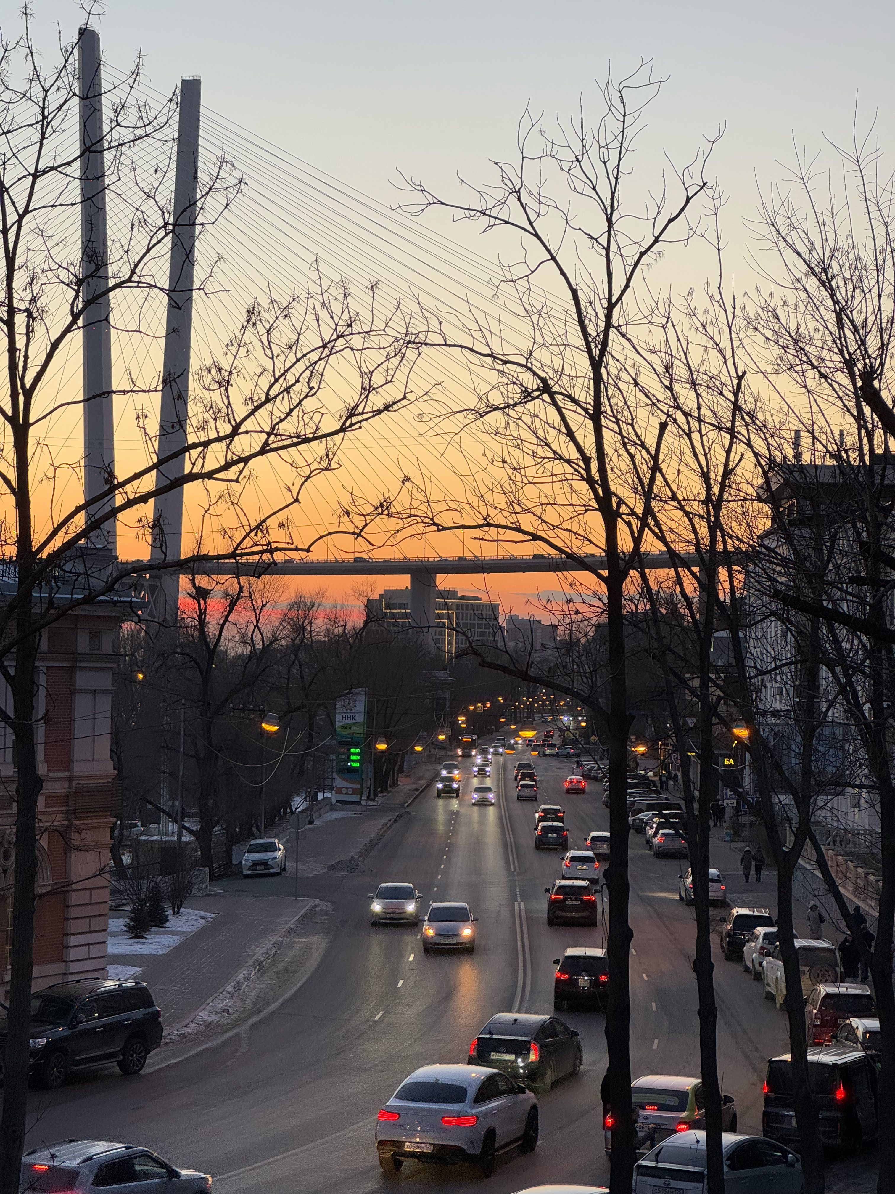 ▲海参崴黄昏,马路上八成是日产车。