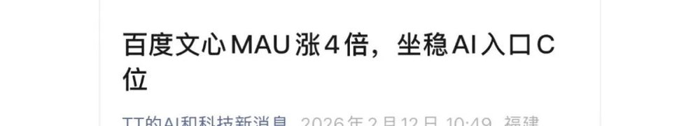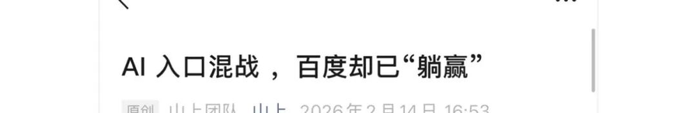 与此同时,不少解读百度“获胜”的文章也在网络上流传,如《AI入口三国杀:百度赢下2026第一战》《百度“躺赢”AI春节档》等。