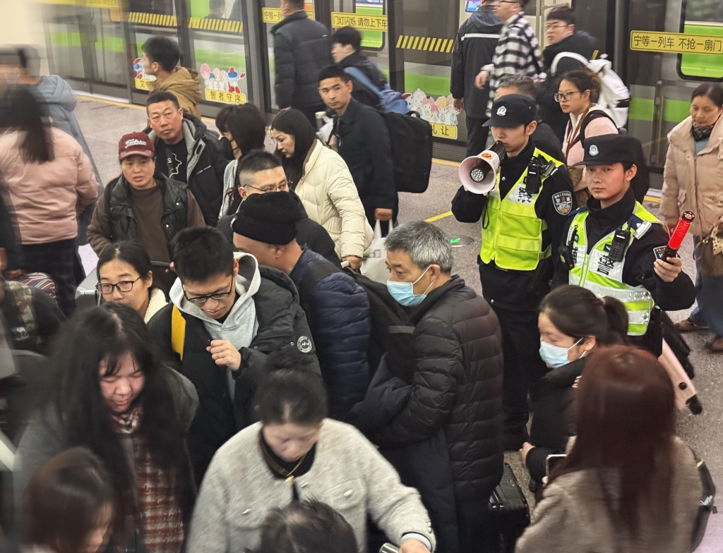 春运期间,上海轨道交通线网(含市域铁路机场联络线)日均客流约860万人次,较2025年增长1.29%。随着春节假期市民出行需求增加,虹桥火车站、上海火车站、上海南站、上海松江站等10个门户站点将面临大客流压力。对此,轨交警方结合“节前离沪、节后返沪”的客流特点,精准分析小时客流集中时段及夜间“红眼列车”到达情况,科学调配警力。