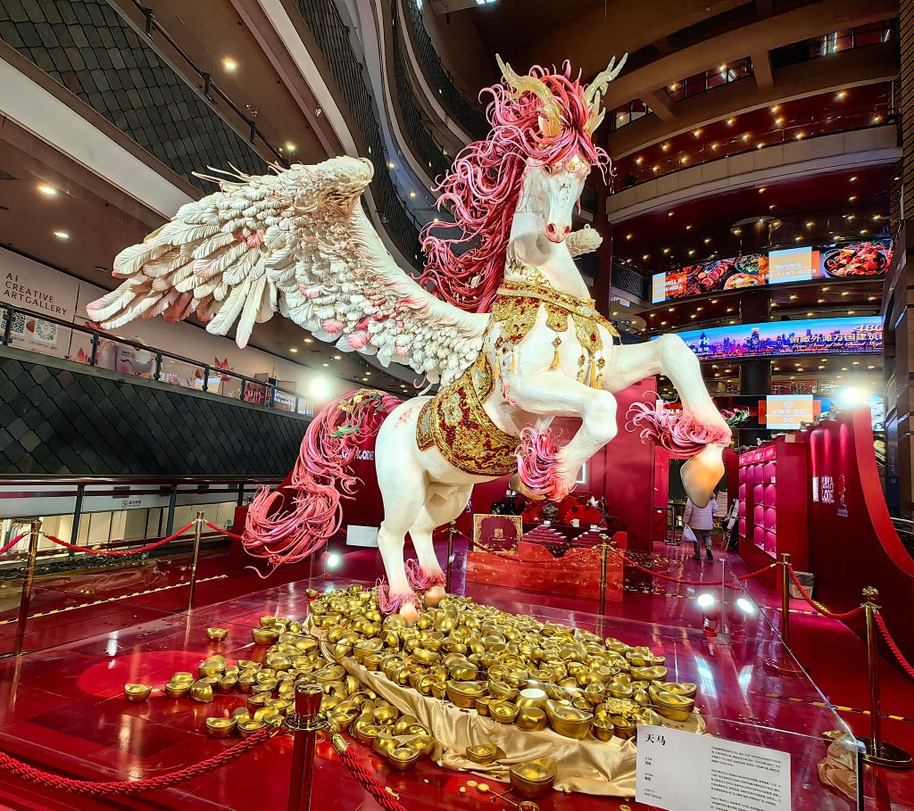 2026年2月9日,上海知名翻糖艺术家周毅全新打造的4米高巨型作品《天马》亮相,成为马年新春到来之际非遗糖艺的一场视觉盛宴。视觉中国 图