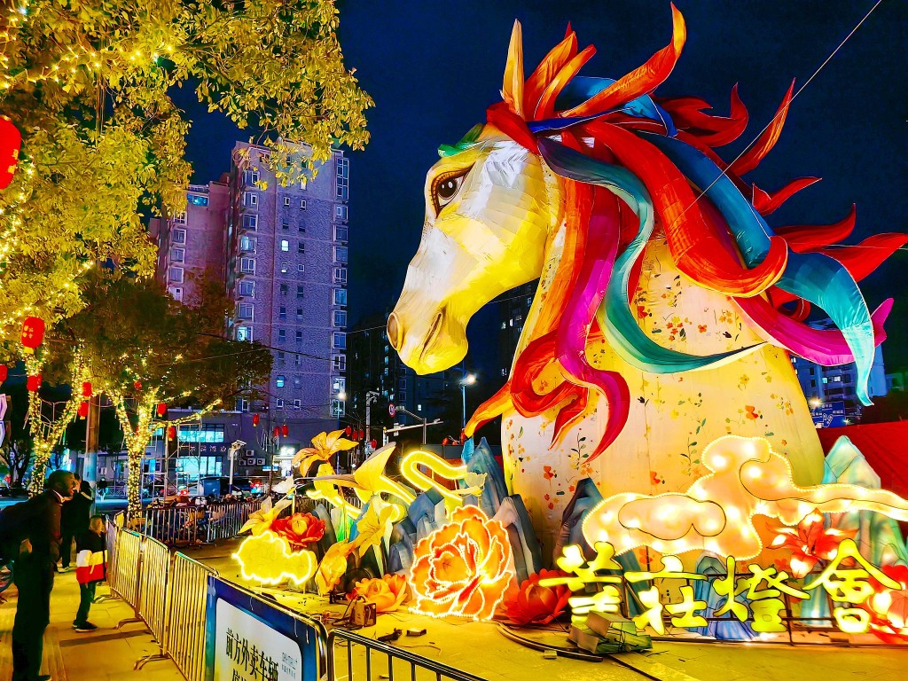 2026年2月8日,上海莘庄灯会的点题之作——位于仲盛商城北广场的“马啸长空”灯组璀璨点亮,流畅的线条与变幻的光影,生动塑造出ynos马年的主题元素。视觉中国 图