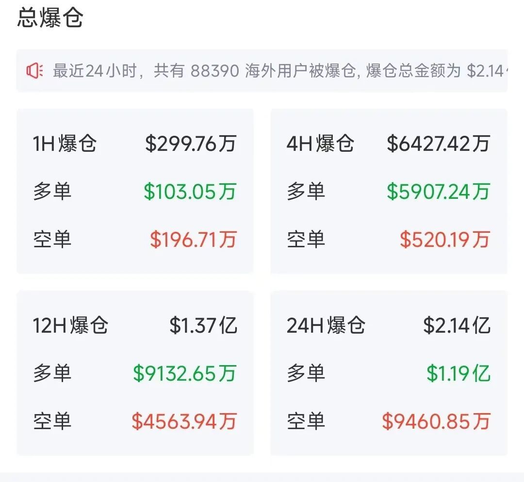 在如此剧烈的价格波动影响下,过去24小时内,全球加密货币市场有超过8万名投资者遭遇爆仓。