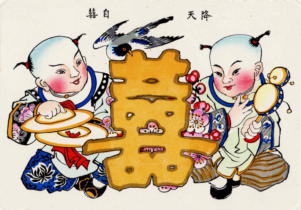 “喜神”也称“吉神”,是民间因趋吉避凶心理产生的信仰神灵。喜神的指代并不固定,和合二仙、八仙等都曾被视为喜神,部分百姓还会供奉祖先画像作为喜神。