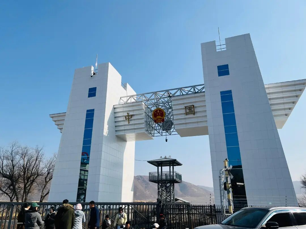 此时的图们,气温虽低,但阳光正好,洒在江面上,冰层泛着耀眼的白光。图们公路口岸的国门高大而庄严,国门一侧,成排的商铺与冒着热气的小吃摊前,操着各地口音的游客排着长队,等待与86号界碑合影。