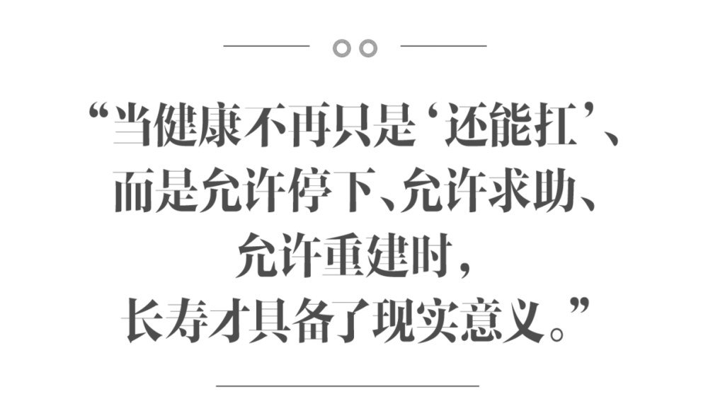 当代中国正进入新阶段:生命更长但不确定性更高,技术更先进但个体更孤独。在这种张力中,“新长寿观”至关重要。它提醒我们,真正值得追求的不是无限延长时间,而是在有限时间里保持功能、连接与感受力。