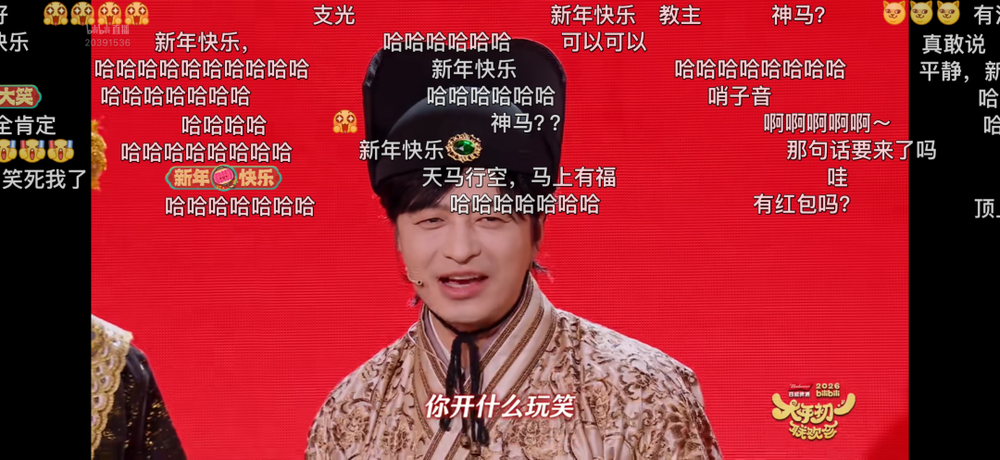 B站晚会还是UP主的素材库:刘旸重演翻红片段成鬼畜新素材,UP主@撂地艺员秦艺桐带着古彩戏法登台,搭配相声演员窦晨光还原街头氛围;节目里的热梗(如“公平,公平,还是嗯啊的公平”)更是B站用户的“暗号”。老艺术家们也表示要刷B站,或许很快会成为鬼畜区新宠。
