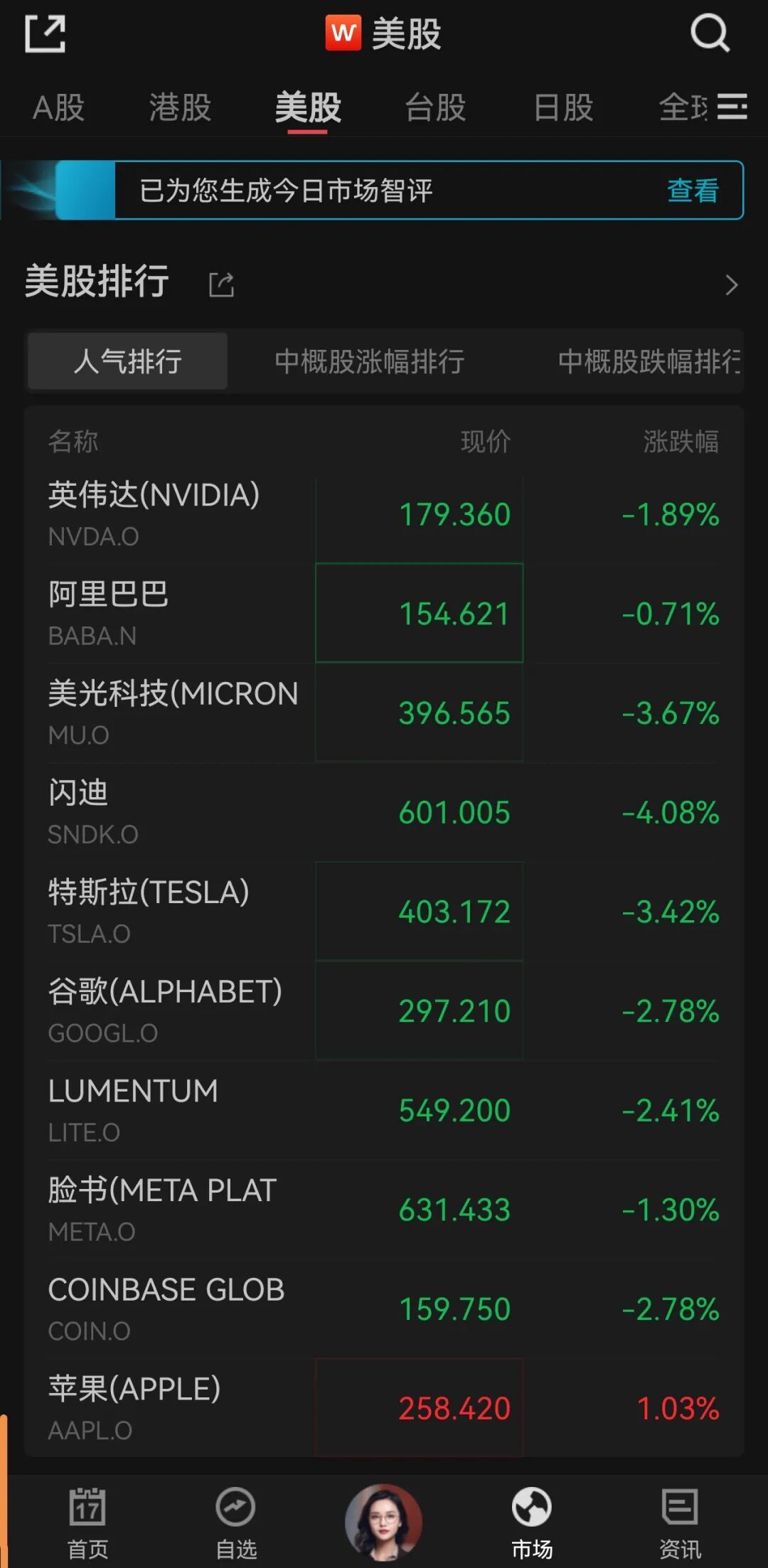 此外,此前被热炒的存储行业龙头美光科技大跌超3%,闪迪跌幅接近5%。