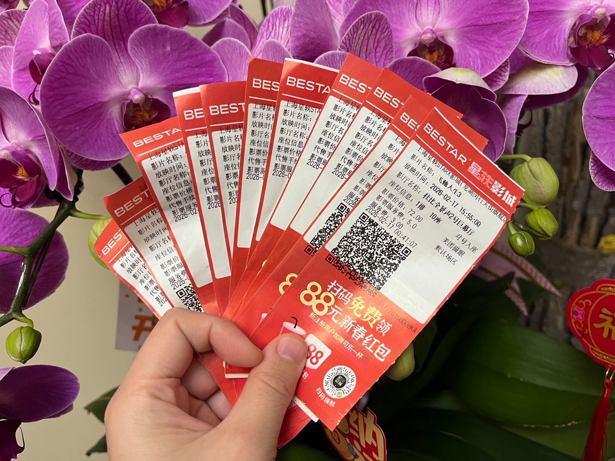 家住松江的小月和导演韩寒是老乡,没抢到家附近松江万达影城韩寒路演场的票,周边万达、印象城热门时段也满座,她便去稍远的影院,赶上了中午11:50那场。观众小丁大年初一给全家买了12张电影票,“跟长辈说一部是张艺谋拍的、一部是沈腾演的,他们就欣然接受了”。靠着上海发放的双人减40元电影消费券,两场电影“省了80块”。