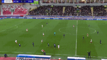 面对困境,大巴黎展开反击。第29分钟,巴尔科拉直塞,替补的杜埃低射破门,巴黎扳回一球。