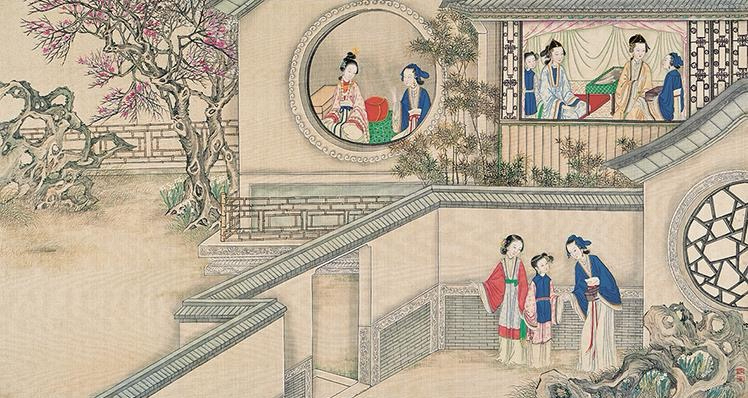 清·孙温绘《红楼梦》(旅顺博物馆藏)此幅对应第7回情节,宝钗谈病配冷香丸等情节。