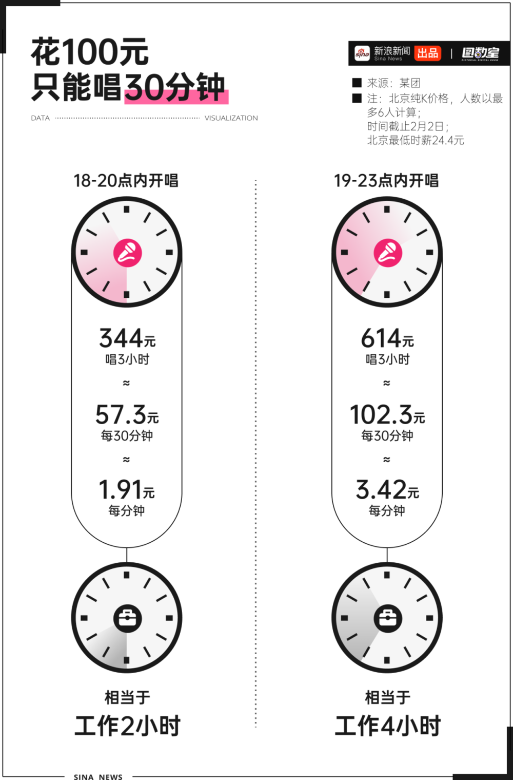 首先是性价比降低。以北京纯K为例,热门时段小包团购价614元,按最多6人算,每人需花102元,折算下来102元只能唱半小时,春节期间更是涨价。若遇上麦霸,其他人只能掏钱干坐着。