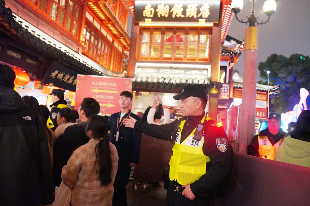 新春佳节,豫园客流显著增加。为做好应对工作,黄浦警方启用“互联网+大客流”安保模式,警务大客流监测系统与现场设置的智能警务瞭望台、警用无人机协同运作,构建起“高空与地面配合”的人流监测网络。九曲桥广场排队等候区及桥面是管控的关键区域,现场执勤警力加强指挥引导,确保游客有序流动。