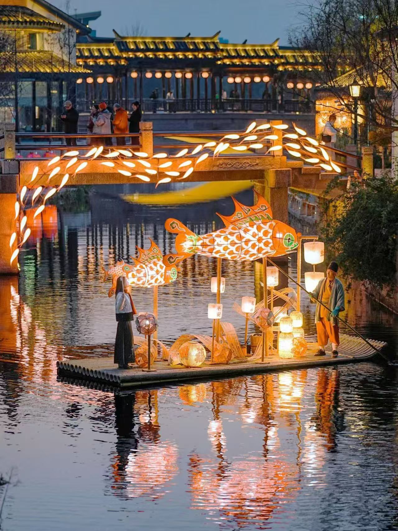 集中各大非遗灯艺的鱼灯竹筏流光溢彩