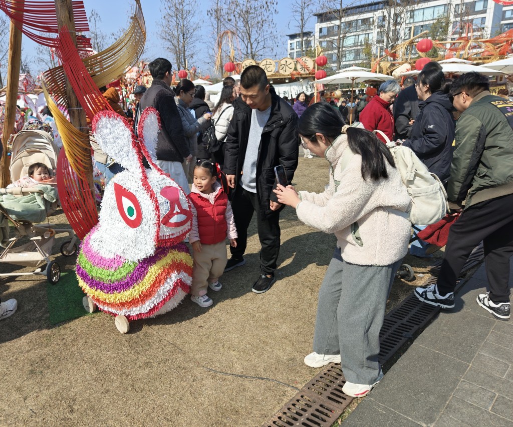 现场不少小朋友开心地与兔子灯合影,但询问后发现,很多孩子是第一次见到这样的兔子灯。这也让兔子灯成为孩子们感知传统年俗的一个窗口。而对于许多成年人来说,这些大大小小的兔子灯和花灯,是找回儿时过年记忆的美好载体。