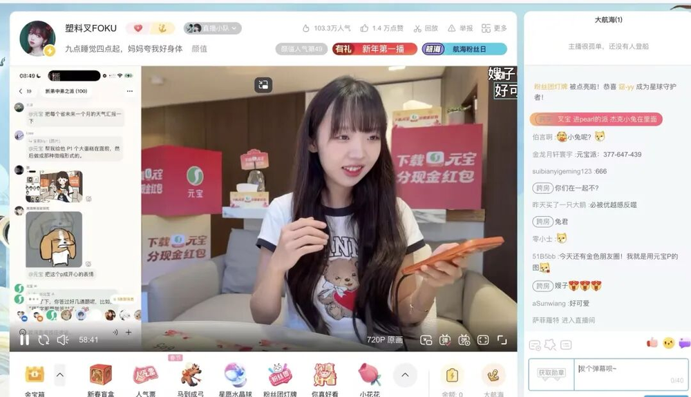 元宝AI则深度参与B站春节特别推出的1000多个兴趣房间(强社交互动线上聚会场景),围绕知识、生活、搞笑、音乐、游戏五大圈层,与33位UP主以“AI+内容创作”形式推出定制直播,如与知识区UP主“塑料叉”共创“学习监工”、与游戏区UP主“赖神”合作“情人节上分”。数据显示,5个圈层定制直播间实时在线峰值均超100万,远超同期平均。