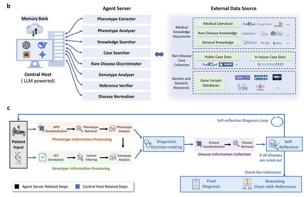 罕见病确诊困难、漏诊率高是全球医疗界的共同难题,传统医疗AI因推理过程不可追溯常陷入“信任危机”,就像医生只给出诊断结果却不说明依据。此次上海交大与新华医院联合团队整合多方科研力量攻关,为DeepRare打造了全球首创的“中枢-分身”可溯源Agentic AI架构,从三个维度实现对传统医疗AI的代际突破,让AI诊断具备了“清晰的诊疗逻辑”。