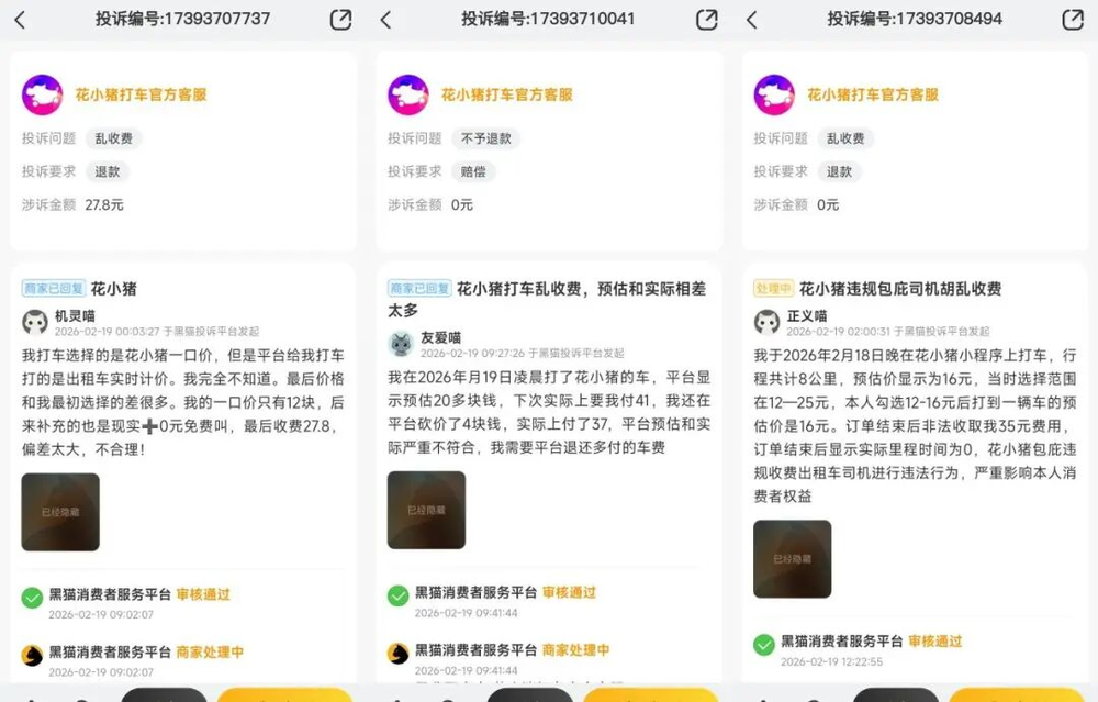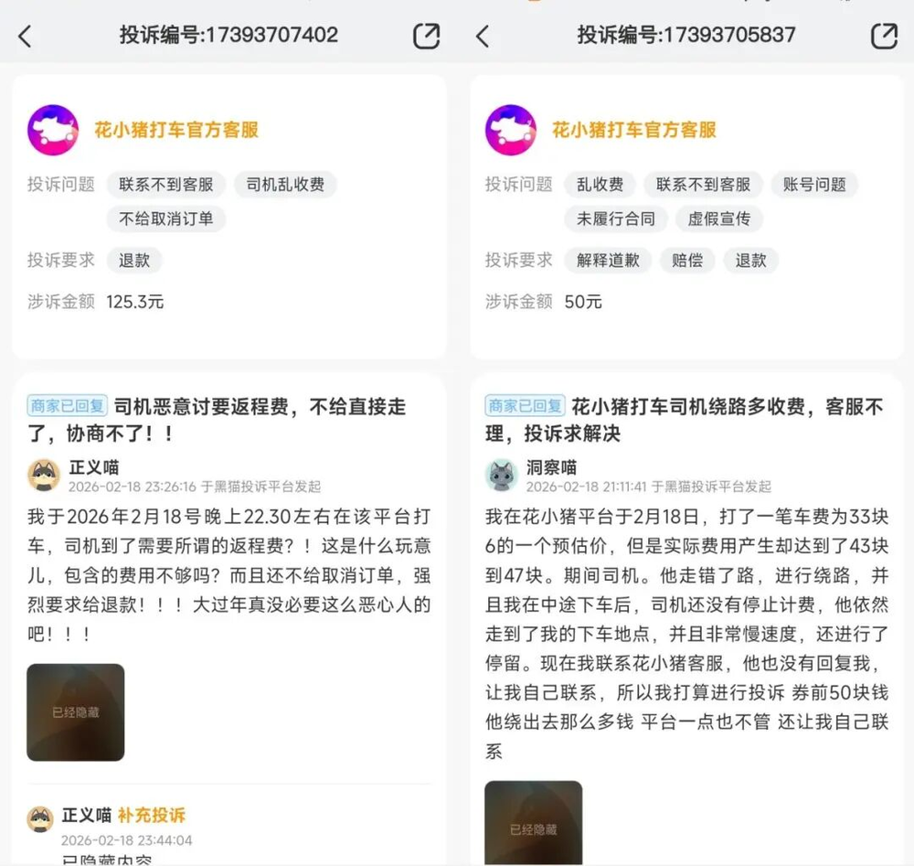 春节期间,“花小猪”的投诉量新增数十条。预估与实际收费严重不符、“一口价”订单却多收钱等问题,成为消费者不满的核心。