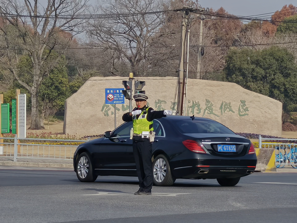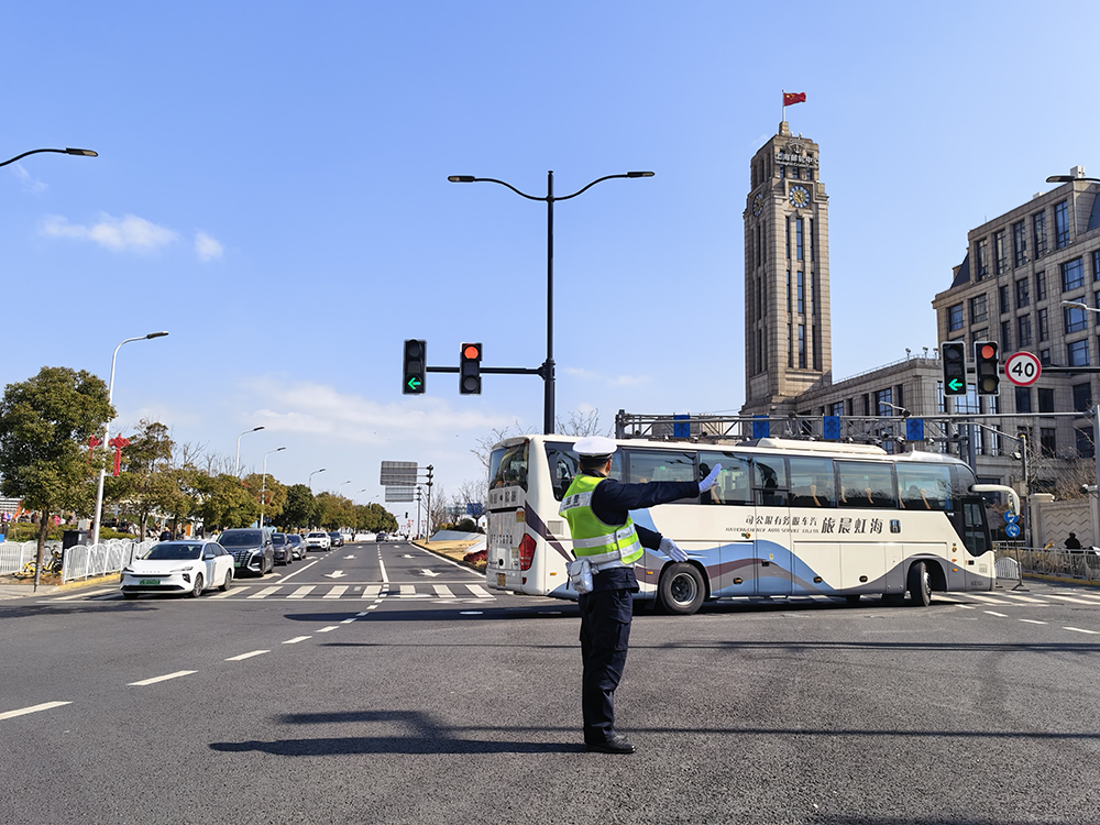 宝山公安分局交管支队民警指挥邮轮港接送车辆有序通行。 上海市公安局供图