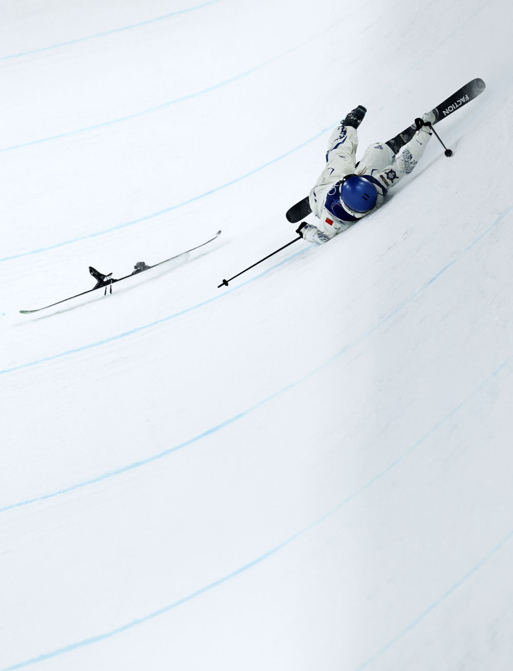 2月19日,中国选手谷爱凌在比赛中摔倒。新华社记者 王鹏 摄