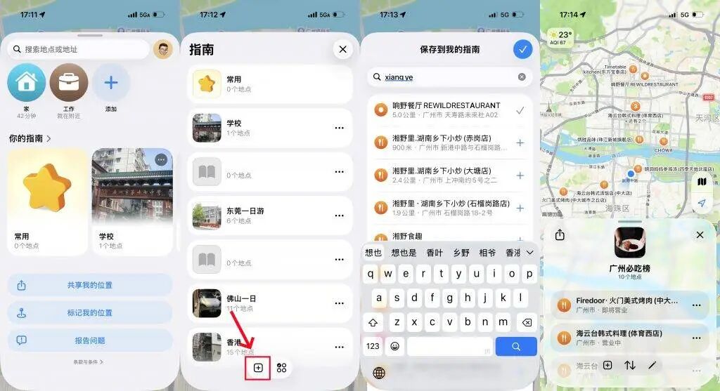 旅游攻略记景点餐厅,用地图「指南」功能更清晰:打开地图App下拉找「你的指南」,添加新指南并录入打卡地址,地图上会标注位置,还能共享给亲友。