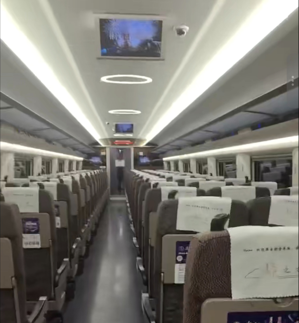 年初一2月17日一早,空荡荡的高铁车厢。本文图片均为 受访者 供图