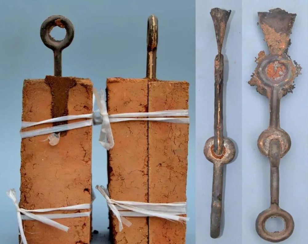 简单来说,先铸造好其中一节铜杆,然后把它的一端卡入制作另一节铜杆的陶制模具中;为防止两个铜杆被铸成一体,注入铜水前,要在成型的圆环上裹一层泥巴,泥巴的厚度就是两个圆环间的活动距离。许多古代青铜器上的套环结构都是这样分铸而成的。