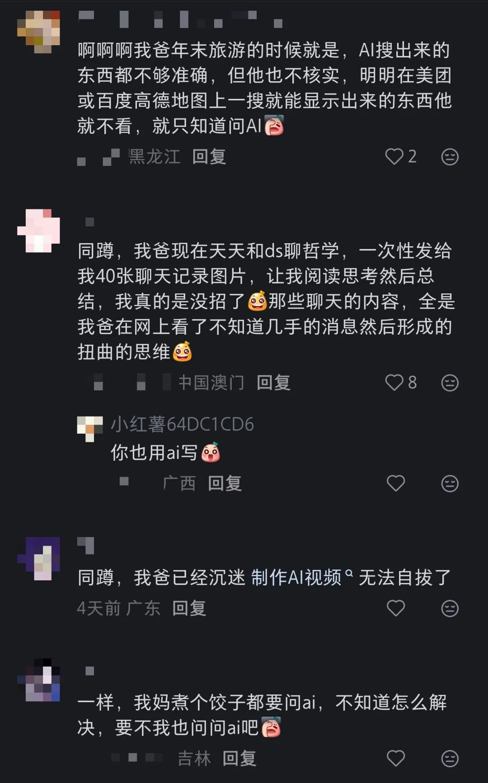 可今年回家,AI渗透父母生活的程度让我彻底震撼。它成了爸妈的日常「背景音」,不仅天天念叨好用,还总反过来给我分享使用心得。我在网上吐槽后,评论区几乎达成共识:「爸妈教我用AI」成了2026年春节最火的返乡场景。