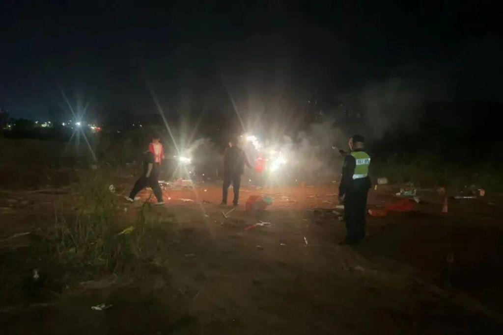 2月16日晚,云浮市新兴县公安局巡警大队在凤凰小学路段巡查时,发现有人违规燃放烟花爆竹引燃周边草丛,火险被及时扑灭,民警对违规人员进行了口头警告。