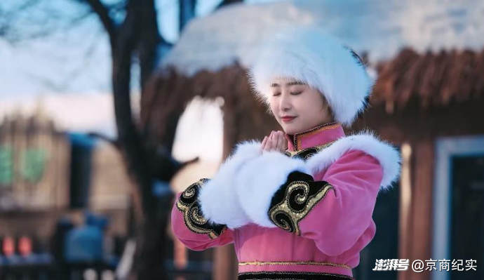 婚礼当天,晨曦微露,接亲队伍乘红色爬犁踏雪而行,岸边芦苇摇曳象征赫哲人坚韧精神。送亲队伍成双而行寓意好事成双,归途不走回头路寄托幸福绵长期许。拜祖先、拜灶王爷恪守古法;木杜丽父亲主厨的全鱼宴鲜香四溢,承载赫哲族饮食文化。