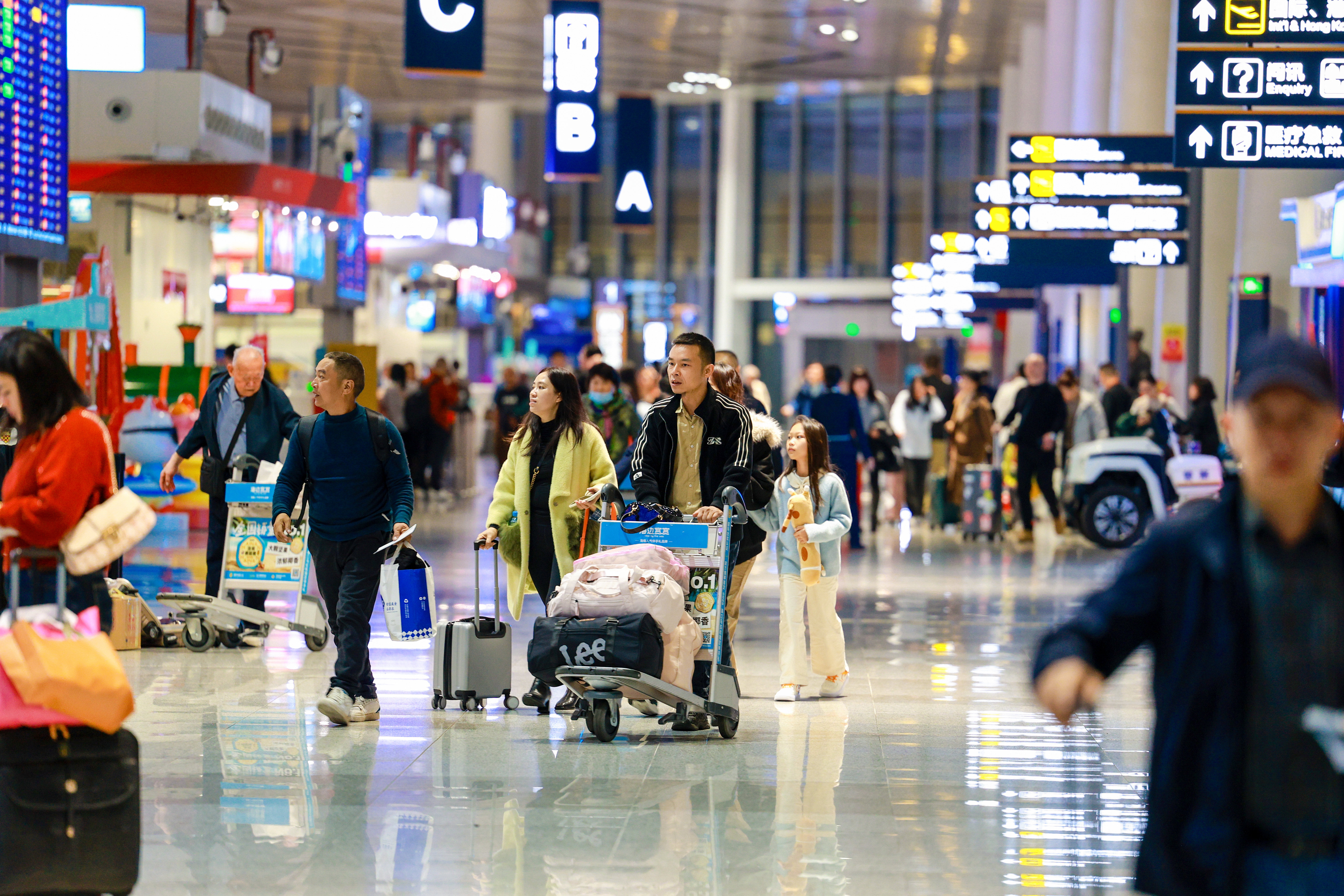 为应对返程高峰,海南机场在民航驻琼监管部门及海南省交通运输厅的指导下,联合18家在琼运营的航空公司开展航空运输市场监测,灵活调配运力,通过加班、更换大机型等方式满足热门航线及目的地的临时需求。