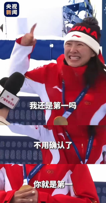 不少人年初二刷到过这样的视频:徐梦桃对着麦克风激动大喊“我还是第一吗?”,伸手指向记者等待肯定答复——“不用确认了,你就是第一!”