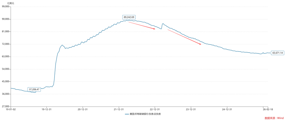 如上图所示,某账户余额在2025年第四季度回落至200亿美元关口附近,与此同时,我们观察到两个关键的流动性现象: