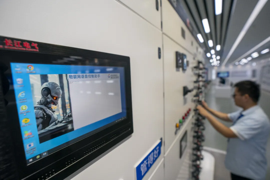工程师通过语音指令测试新一代智能电气柜。(记者 魏徕 摄)