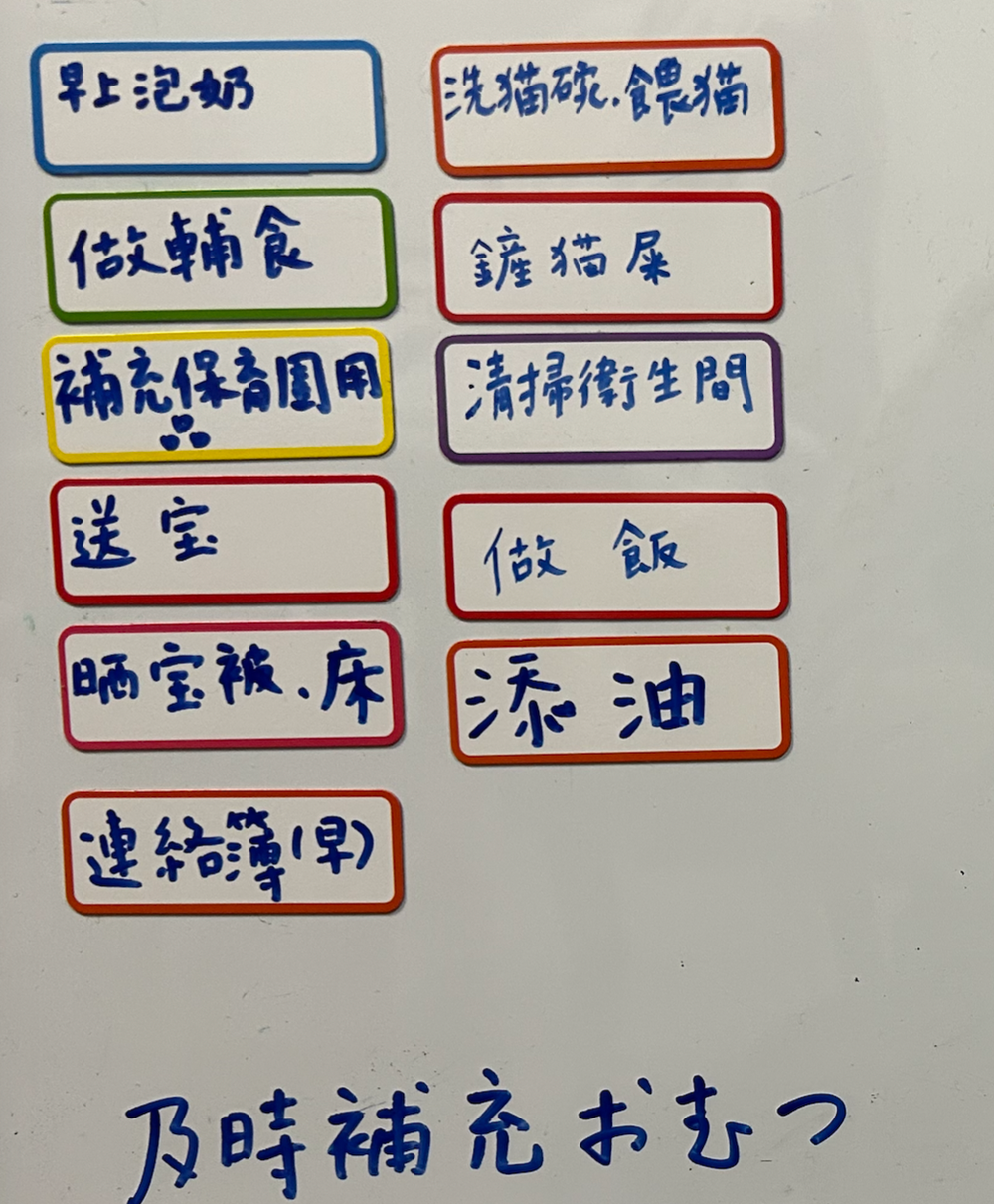 去年冬天,岳母回国后,家里带娃的就剩我和妻子两人。妻子如临大敌,还搬出平时梳理论文思路的白板,画了个简单表格,左边列我的任务,右边列她的,把每天要做的事都写得明明白白。